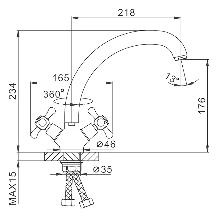 - Высота смесителя:23.4