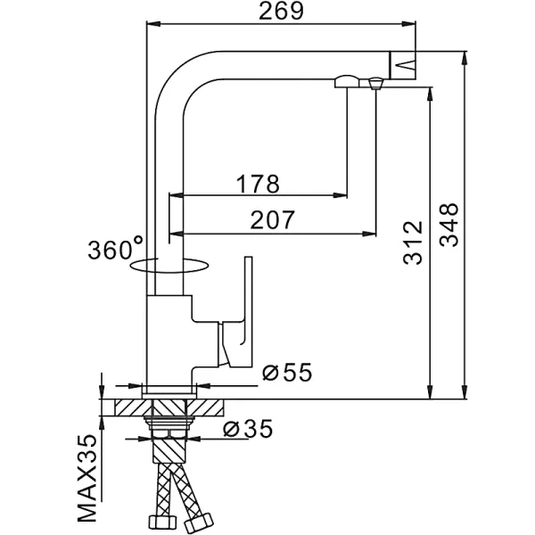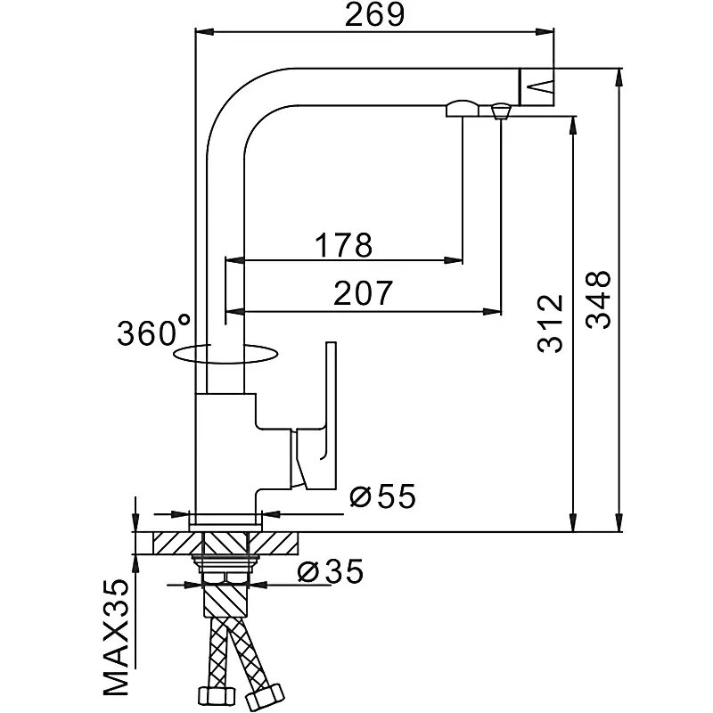 • Высота смесителя:
