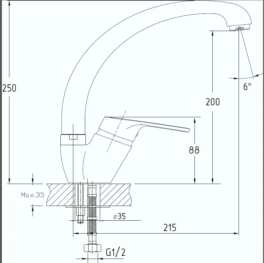 • Высота смесителя: