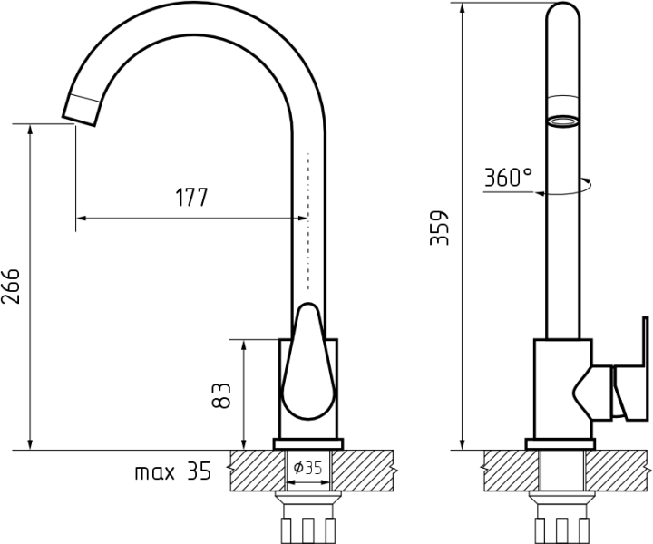 - Высота смесителя:26.6