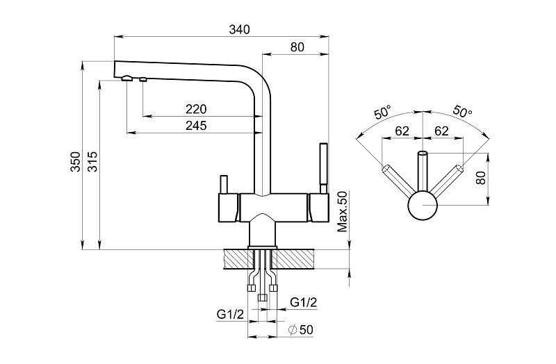 Смеситель для кухни Granula 2305, НЕРЖ Нержавеющая сталь