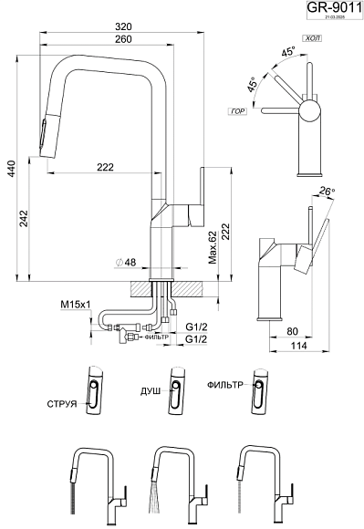 - Выдвижной излив:да