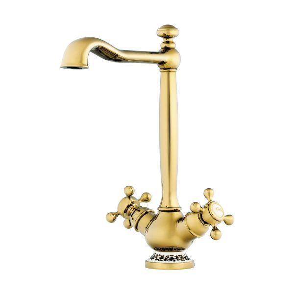 • Эксклюзивный классический дизайн, уникальное исполнение с добавлением керамического элемента с восточным орнаментом; • Золотое покрытие; • Высокий излив обеспечивает максимально удобное использование смесителя; • Высококачественная латунь сохранит воду чистой и здоровой; • Аэратор произведен из пластика, благодаря чему на нем никогда не появится известкового налета и ржавчины; • Коробка внутри проложена поролоном, который обеспечит сохранность изделия при транспортировке; • Полный набор креплений, соединительных шлангов, подробная инструкция и гарантийный талон в комплекте.