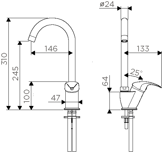 Высота смесителя:31