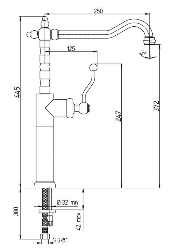 - Высота смесителя:44.5