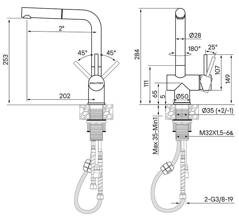 Смеситель для кухни с выдвижным шлангом, артикул Do214418-431Изготовлен из нержавеющей стали AISI 304. Нержавеющая сталь AISI 304 легирована никелем, марганцем, медью и хромом, что обеспечивает ей повышенную прочность и устойчивость в коррозионных средах, такая сталь не подвержена деформациям.Вытяжной шланг