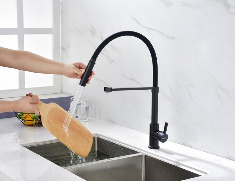 Смеситель для кухни, с гибким изливом, артикул Ha214021-401Изготовлен из высококачественной латуни, которая отвечает высочайшим европейским стандартам качества, не содержит свинца, не разрушается со временем и безопасна для здоровья.