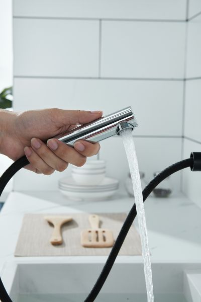Смеситель для кухни с выдвижным шлангом, Ka214311-401Изготовлен из высококачественной латуни, которая отвечает высочайшим европейским стандартам качества, не содержит свинца, не разрушается со временем и безопасна для здоровья.Вытяжной шланг