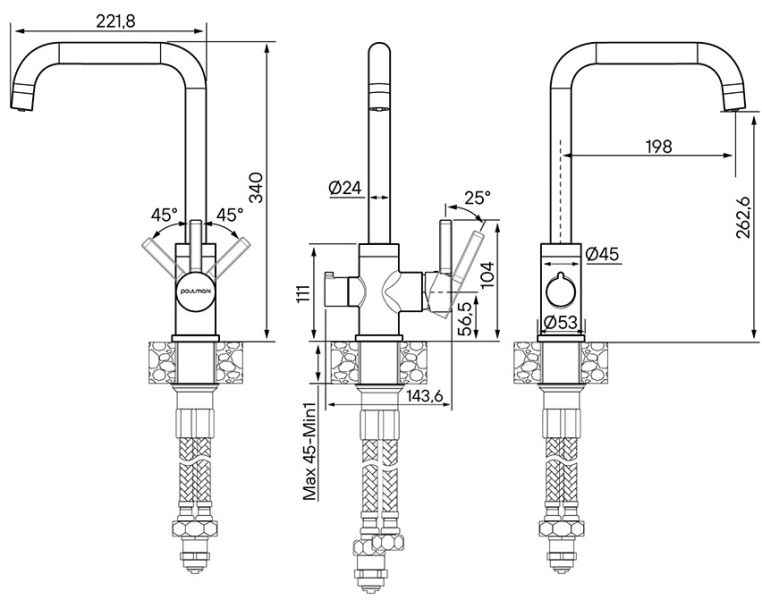 • Высота смесителя:
