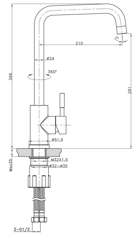 - Высота смесителя:36.6