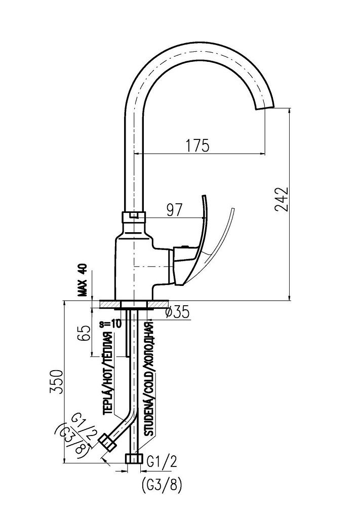 - Длина излива, см:17.5