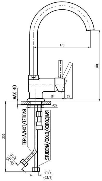 - Высота смесителя:32.5