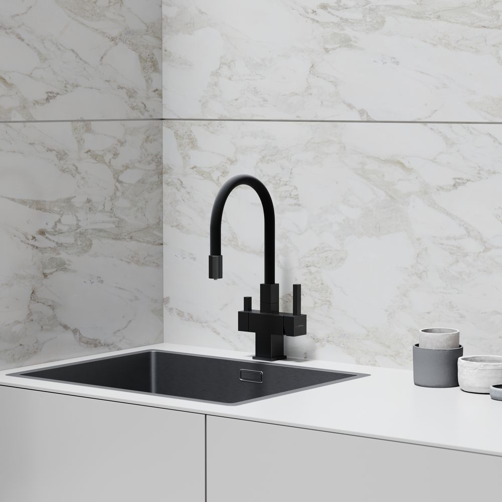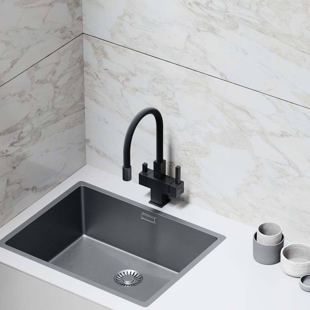 Смеситель для кухни SANCOS Arno с гибким изливом и возможностью подключения фильтра для воды, цвет матовый черный, арт. SC4005MBФункция "Холодный старт" - при включении смесителя активируется холодной поток, для экономии горячей водыАэратор, гибкая подводка, ключ и крепления для монтажа