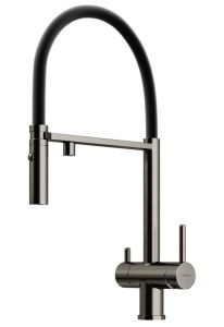 Смеситель для кухни SANCOS Imola с гибким изливом и возможностью подключения фильтра для воды, цвет вороненая сталь, арт. SC4010GGФункция "Холодный старт" - при включении смесителя активируется холодной поток, для экономии горячей водыАэратор, гибкая подводка, ключ и крепления для монтажа