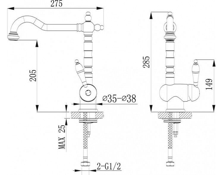 • Смеситель для кухни, для гранитных моек