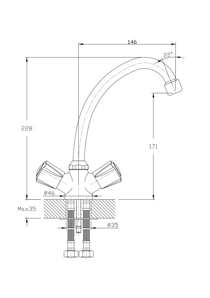 - Высота смесителя:22.8