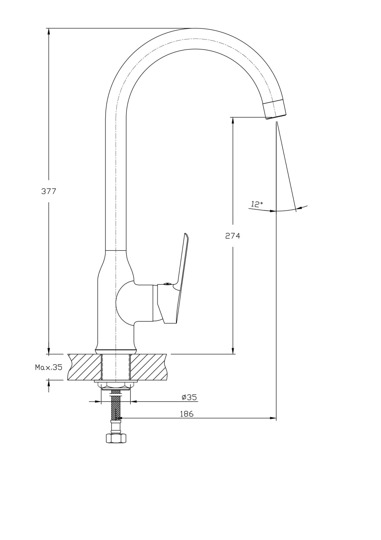• Высота смесителя:
