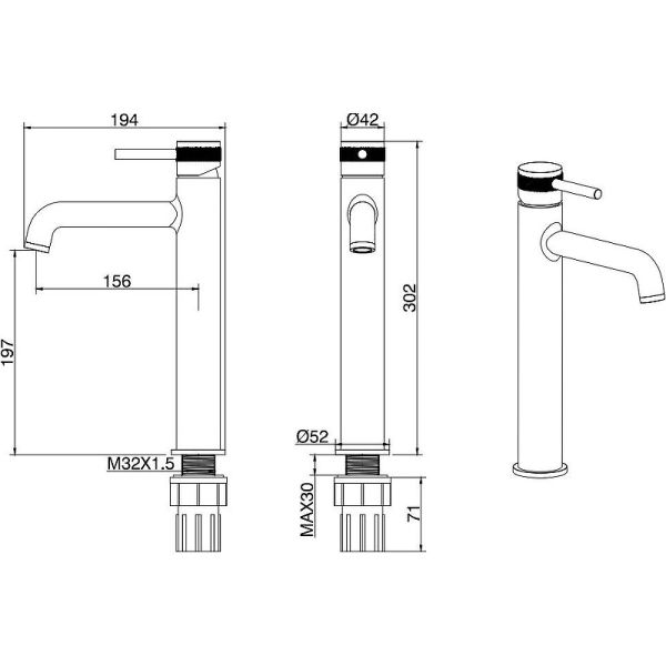- Высота смесителя:30.2