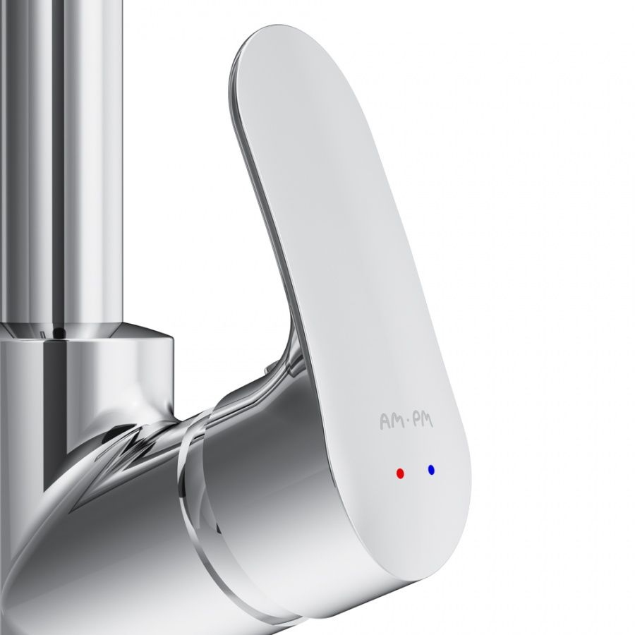 в котором учтены все детали: благодаря уникальной форме ручки капли воды скатываются, предотвращая образование налета, а не высыхают на поверхности.Эксклюзивная разработка: специально спроектированный для АМ.РМ керамический картридж SoftMotion 35 мм обеспечивает оптимальную регулировку температуры, а также позволяет выдерживать любые перепады давления. Высокий излив придает смесителю утонченный