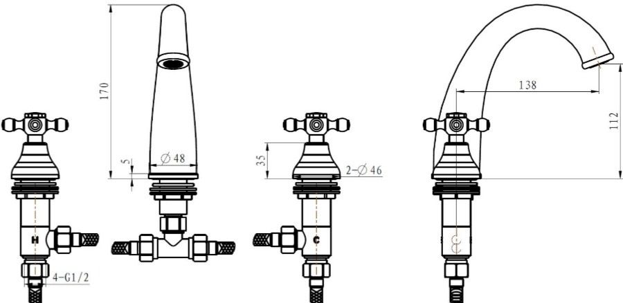 • Высота смесителя: