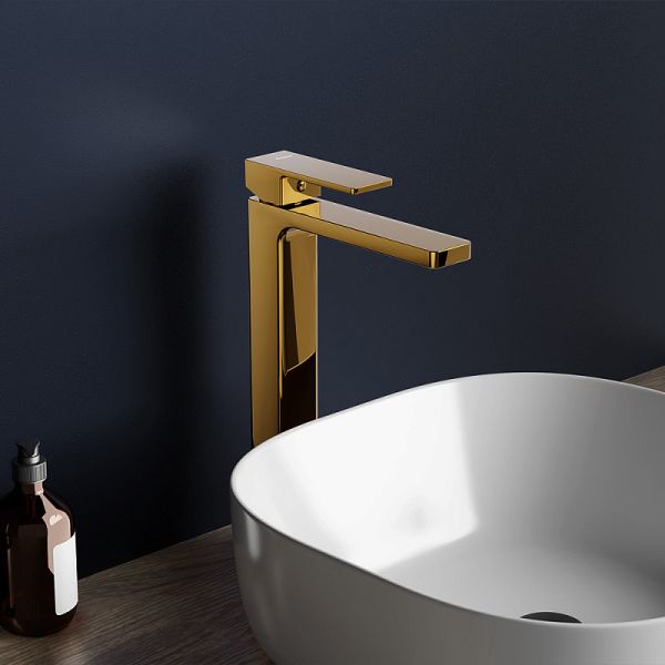Смеситель для раковины Damixa Gala 530250600 золотоВысокий смеситель Gala обладает мягкими геометричными формами, которые идеально впишутся в современную ванную комнату. Смеситель с высоким изливом идеально впишется в современный интерьер ванной комнаты с накладной раковиной. Размер (Ш/Г/В): 48x194x303 мм. Материал - латунь. Цвет - золото.