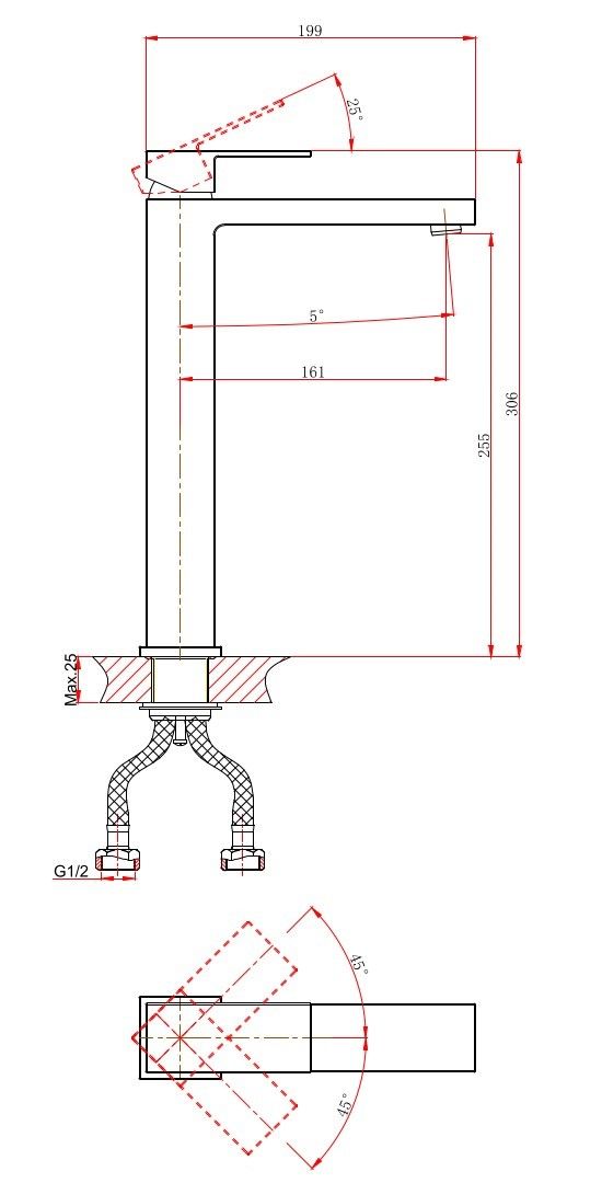 - Высота смесителя:30.6