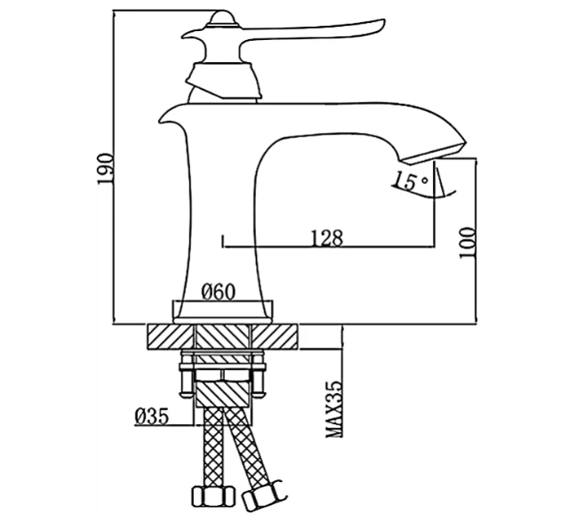• высота смесителя: 190 мм