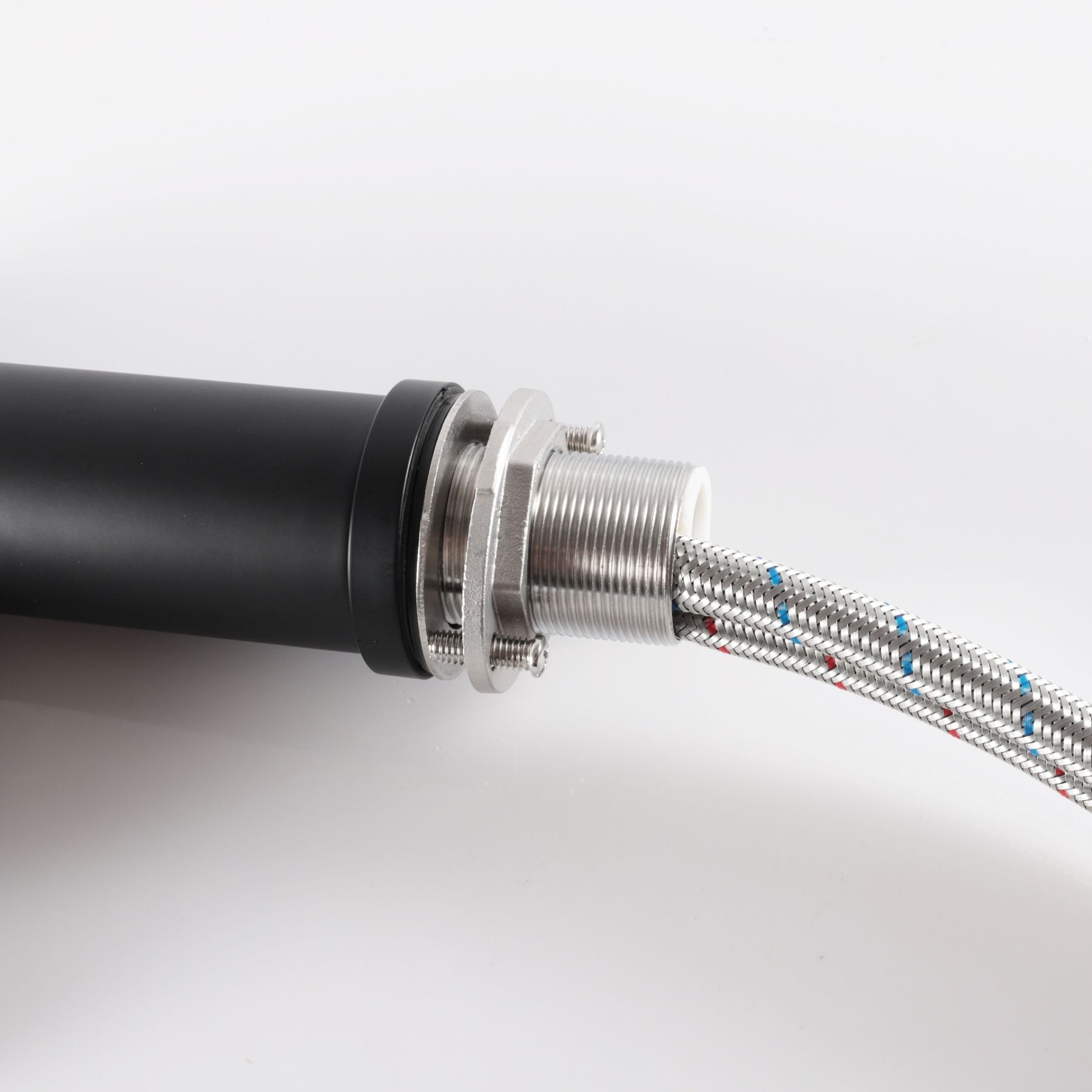 Cascada – Смелый дизайн и нестандартные формы сочетаются с испанским качеством и европейскими стандартами. Эти смесители превращают каждый поток воды в динамичное произведение искусства. Смеситель GID Berlin SS080-BM-K — это короткая версия в благородном черном цвете, которая сочетает в себе современный стиль и высокую функциональность. Изготовленный из нержавеющей стали марки SUS 404, он отличается прочностью, долговечностью и устойчивостью к воздействию воды. Название смесителя вдохновлено водопадом Берлин в Южной Африке, известным своими живописными каскадами и окружением из густой зелени, что подчеркивает гармоничное сочетание природной красоты и функциональности. Модель Berlin SS080-BM-K станет ярким акцентом в интерьере ванной комнаты, обеспечивая комфорт и надежность. Комплект: смеситель Berlin SS080-BM-K; 2 шланга подачи воды, дополнительные аэратор и керамический картридж; шестигранный ключ.
