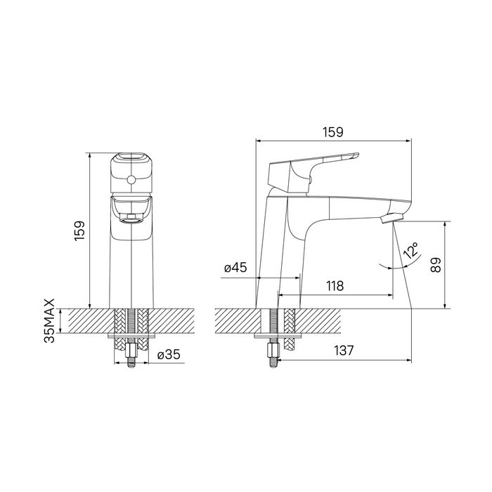 • Высота смесителя: