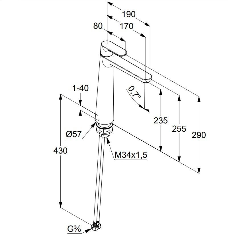 - Длина излива, см:17