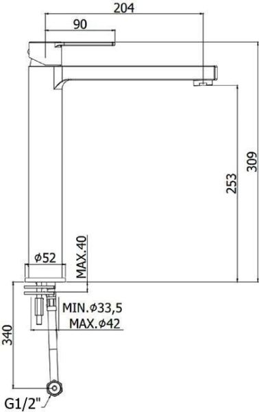 • Высота смесителя: