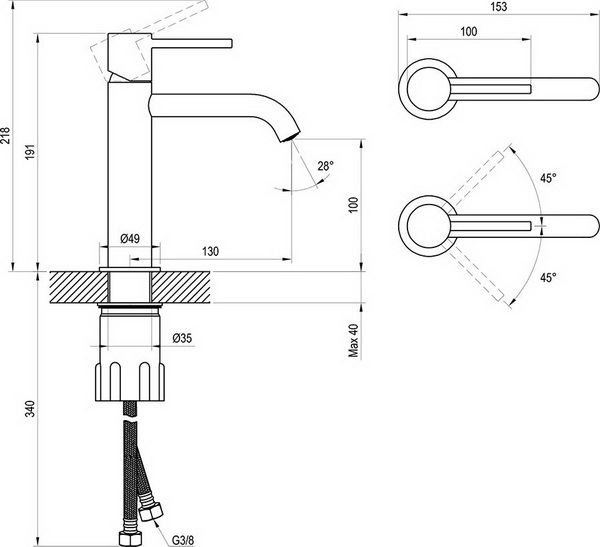 - Высота смесителя:19.1