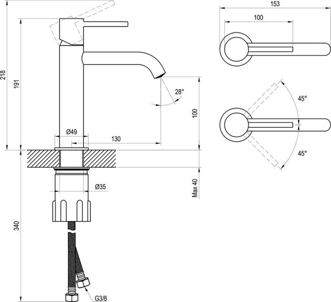 - Высота смесителя:19.1
