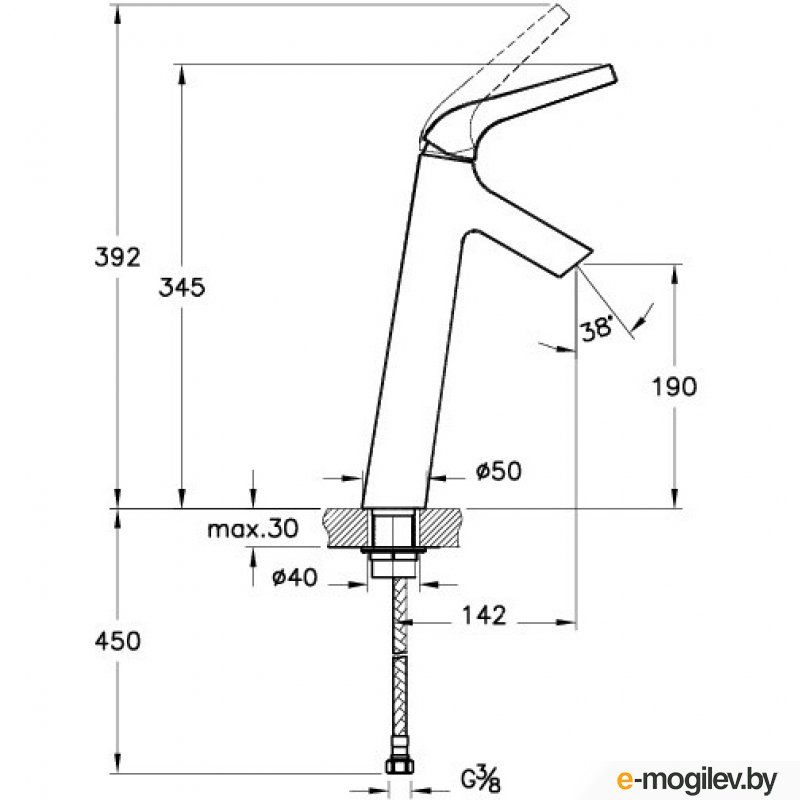 • Высота смесителя: