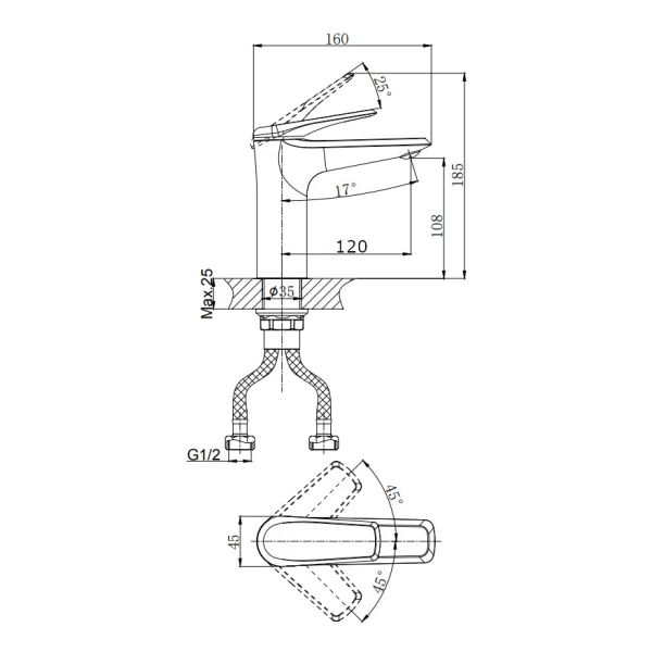 - Высота смесителя:18.5