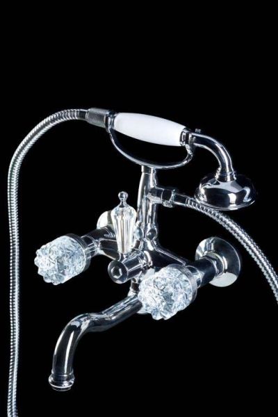 Смеситель Boheme Crystal 273-CRST для ванны с душем то, что нужно в современном интерьере. На ванну безупречно впишется смеситель Boheme Crystal. Особенностью двухвентильных смесителей является наличие двух раздельных вентилей для регулирования холодной и горячей воды.Латунь из которой произведен смеситель Boheme Crystal 273-CRST отличается высокой прочностью и произведена без использования вредных компонентов. длина излива 20.2 см - это оптимальные параметры у смесителя Boheme 273-CRST, предотвращающие разбрызгивание. Конструкция модели Boheme Crystal позволяет идеально установить смеситель на стену. Смеситель для ванны Boheme 273-CRST выполнен в стиле ретро, что отлично прослеживается в его форме. Марка Boheme, родиной которой, является Италия, создает смесители качества с высокотехнологичного оборудования, благодаря чему смесители отличаются долговечностью и надежностью. Смеситель Boheme Crystal 273-CRST для ванны с душем отличная покупка для вашей ванной комнаты.