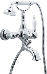 Смеситель Boheme Tradizionale Chromo 263 для ванны с душем отличный выбор в дизайне современной ванной, который идеально впишется в ваш интерьер. Смеситель Boheme Tradizionale Chromo дополнит вашу ванну комфортом и уютом. Благодаря удобной конструкции однорычажных моделей, процесс регулировки температуры воды и интенсивность струи можно произвести одной рукой без особых усилий.Латунь, керамика использованная в конструкции смесителя Boheme Tradizionale Chromo 263 соответствует всем необходимым стандартам качества и является абсолютно безвредной для здоровья. Излив смесителя Boheme 263 длиной 17.4 см обеспечит идеальное и комфортное использовании при принятии водных процедур. Излив Boheme Tradizionale Chromo так же оснащен функцией вращения, что значительно упростит использование смесителя. Конструкция модели Boheme Tradizionale Chromo позволяет восхитительно установить смеситель на стену. Смеситель для ванны Boheme 263 выполнен в стиле ретро, что восхитительно прослеживается в его форме. Родина бренда Boheme – Италия, все смесители произведены с высокой точностью и грамотностью технологического процесса. Смеситель Boheme Tradizionale Chromo 263 для ванны с душем позволит обновить ваш санузел, и станет его изюминкой.