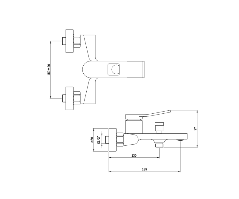 Смеситель для ванны Bronze de Luxe Element EL03GB, матовое золото/черный