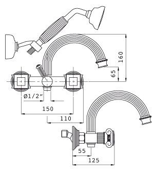 Смеситель для ванны и душа Cezares APHRODITE-V-03/24-S1