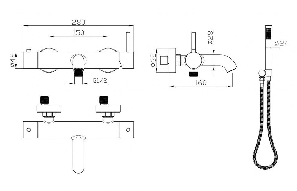 Смеситель для ванны с душем Milacio MCU MCU.350.MB чёрный матовый купить