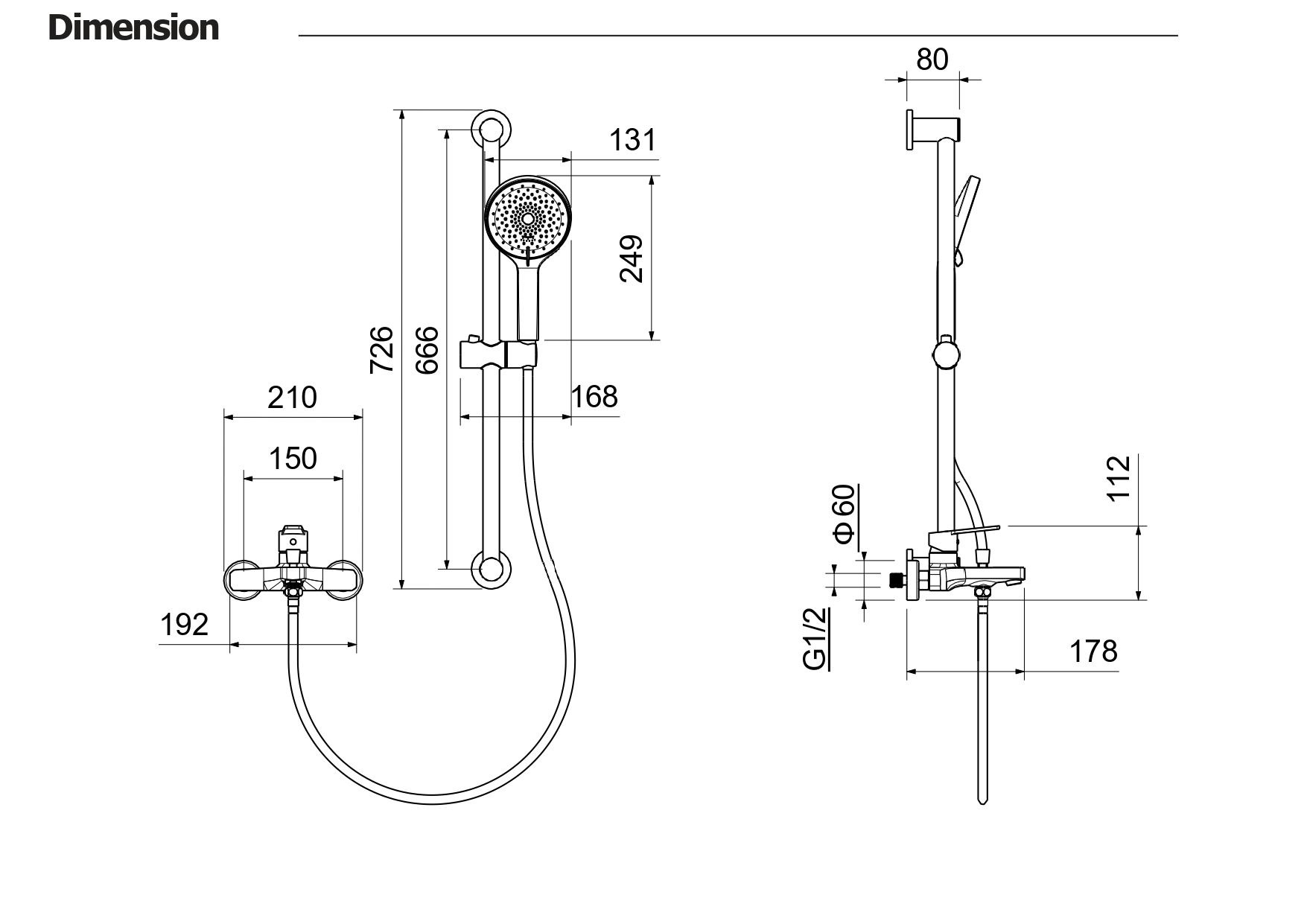 • Душевой гарнитур (лейка, шланг, настенный держатель для лейки)