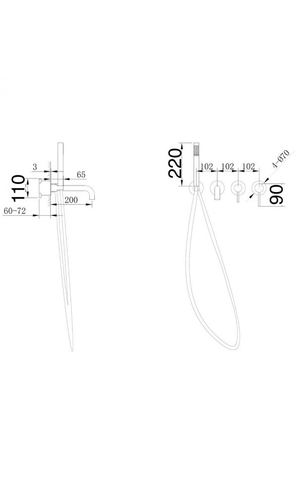 Смеситель для ванны с ручным душем Grocenberg GB5070BL Чёрный матовый