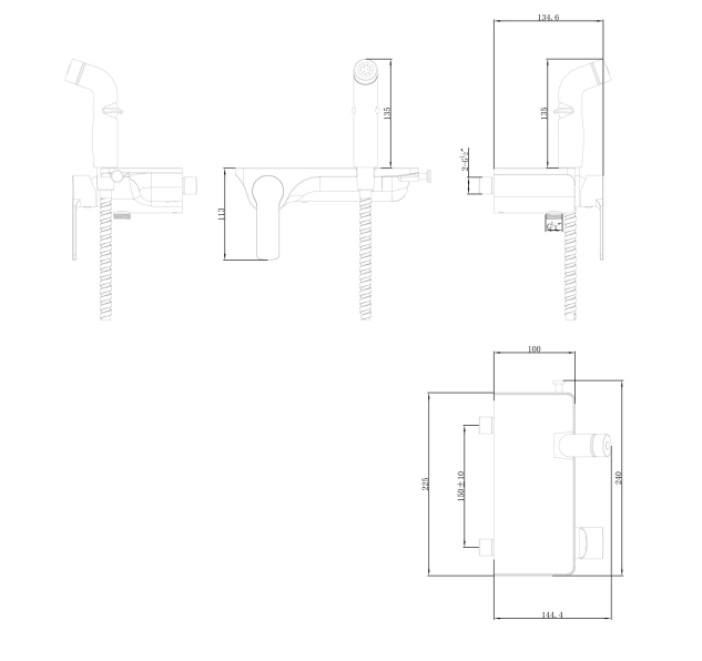 • Аксессуары в комплекте: шланг 1,2 м turn free, лейка для биде с регулятором напора воды
