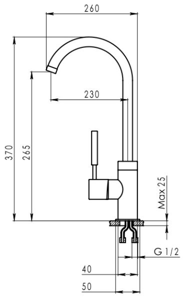 • Высота смесителя: