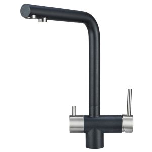 Смеситель для кухонной мойкиЦветовая гамма: Алюминиум, Классик, Антик, Песок, Пирит, Базальт, Арктик, Эспрессо, Графит, Черный, ШварцГибкая подводка (3 шт.); набор для крепления; прокладки уплотнительные (2 шт.); аэраторГарантийный срок от производителя - 5 лет