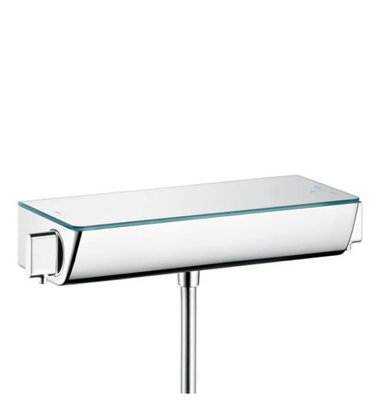 Смеситель Hansgrohe Ecostat Select 13161000 для душа с термостатомХарактеристики продукта:-1 потребитель-предохранительный ограничитель при 40°C-из безопасного стекла-поверхность полочки: хром или белый-кнопка Ecostop ограничивает расход воды до 10 л/мин