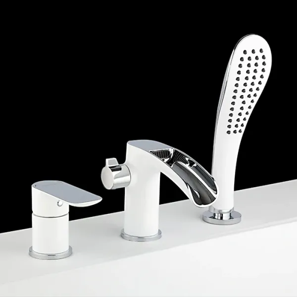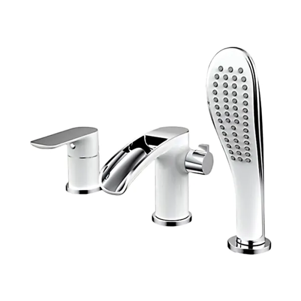 Смеситель на борт ванны Gappo Noar G1148-8 - стильная латунная модель для установки на борт ванны, на 3 отверстия. Оригинальный каскадный излив, покрытие хромированное (цвет белый / хром), управление однорычажное, гибкая подводка воды, удобная душевая лейка.