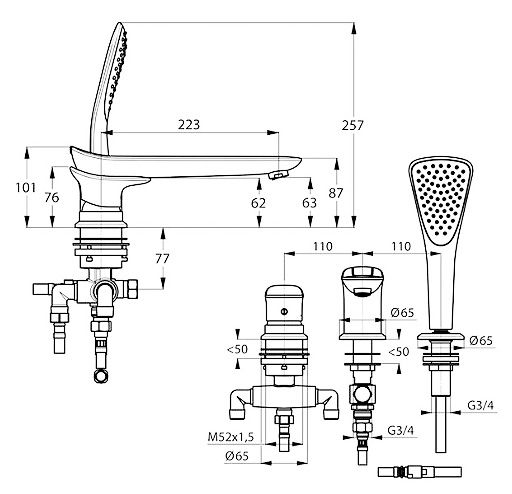 - ванна: расход воды 24 л/мин при давлении 3 бара