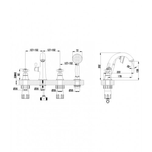 Артикул LM2841BСмеситель для ванны на 4 отверстия