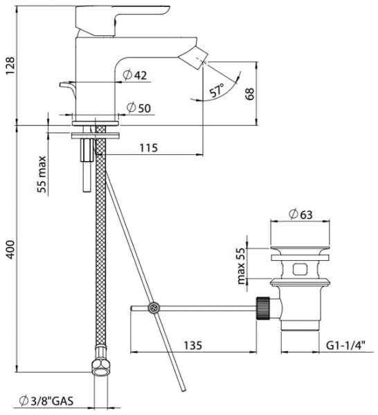 • Стандарт подводки:1/2"